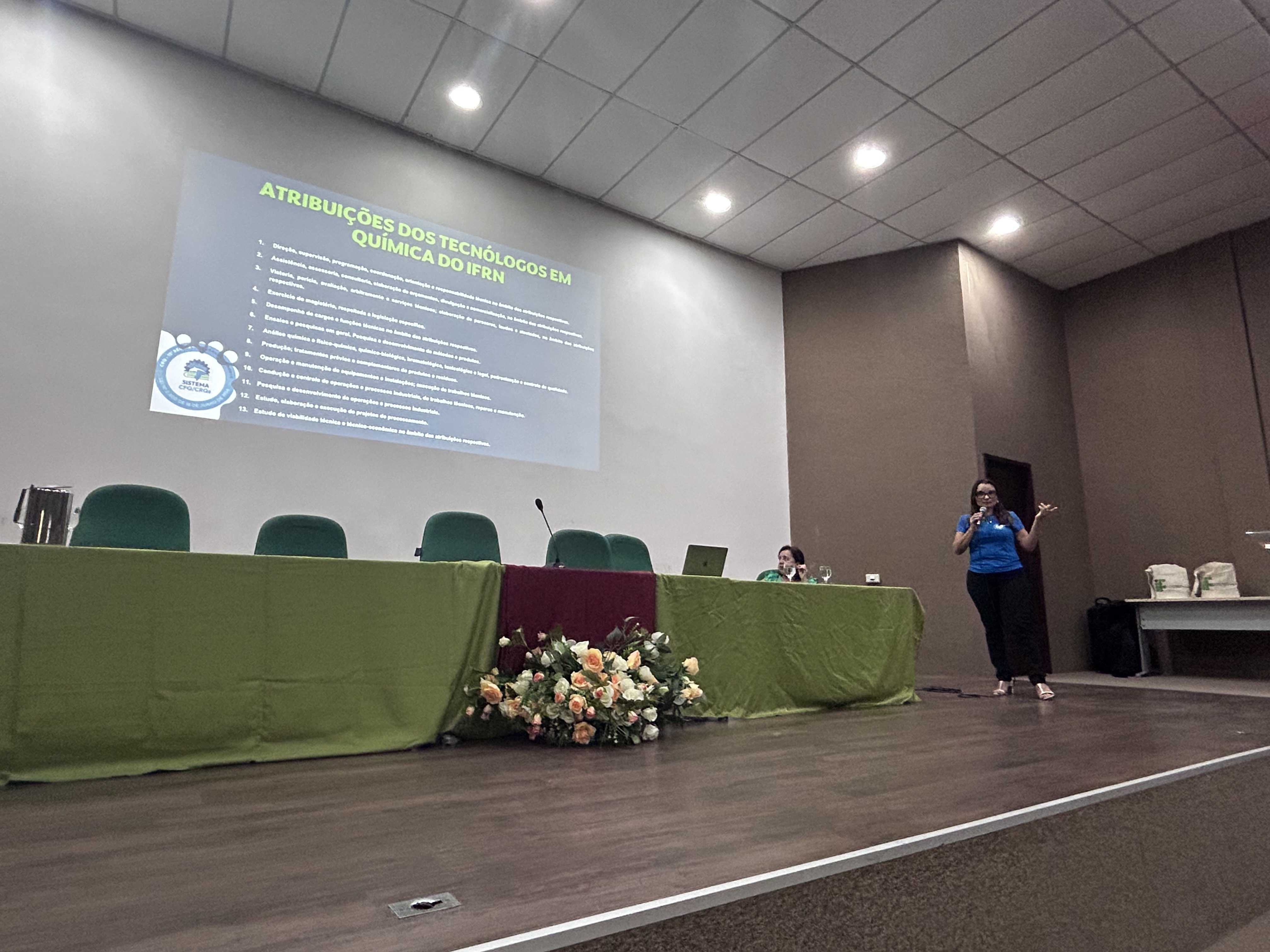 O CRQ-15 foi convidado a realizara palestra inaugural. A Conselheira e Tesoureira Nedja Fernandes e a Gerente Perla de Sousa, palestraram sobre "As Perspectivas do Mercado de Trabalho para os Profissionais da Química no Rio Grande do Norte".