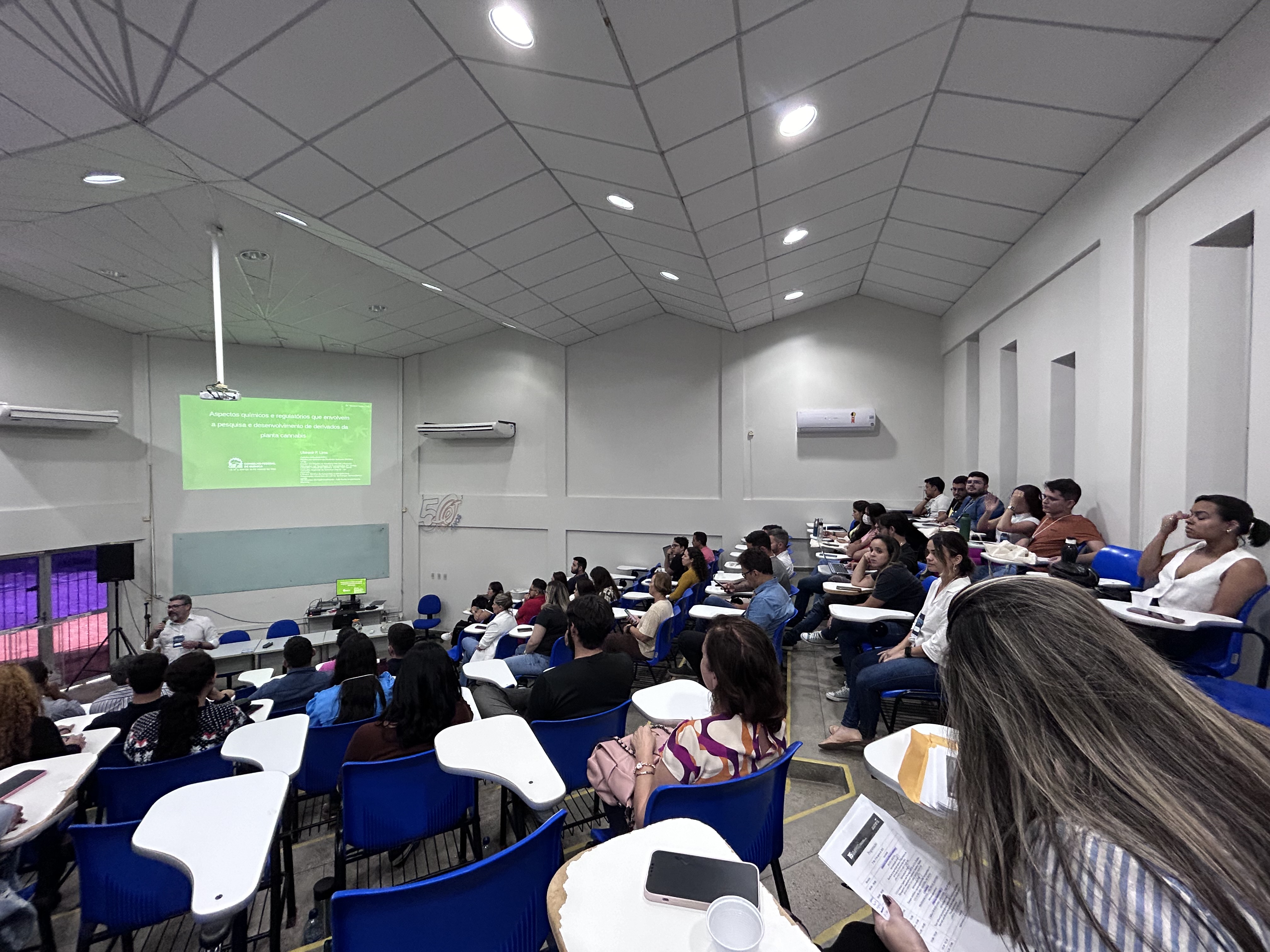 Nos dias 15 e 16 de agosto, ocorreu o 15º Simpósio do Programa de Pós-Graduação em Química da Universidade Federal do Rio Grande do Norte (PPGQ/UFRN). A convite do Conselho Regional de Química da 15ª Região (CRQ XV – Rio Grande do Norte), representado pela presidente Dra. Emily Tossi, o conselheiro federal Ubiracir Lima, coordenador do Grupo Técnico de Cannabis e membro da Coordenação de Fiscalização e Orientação Profissional (CFISC), apresentou uma palestra para mestrandos e doutorandos do PPGQ/UFRN.