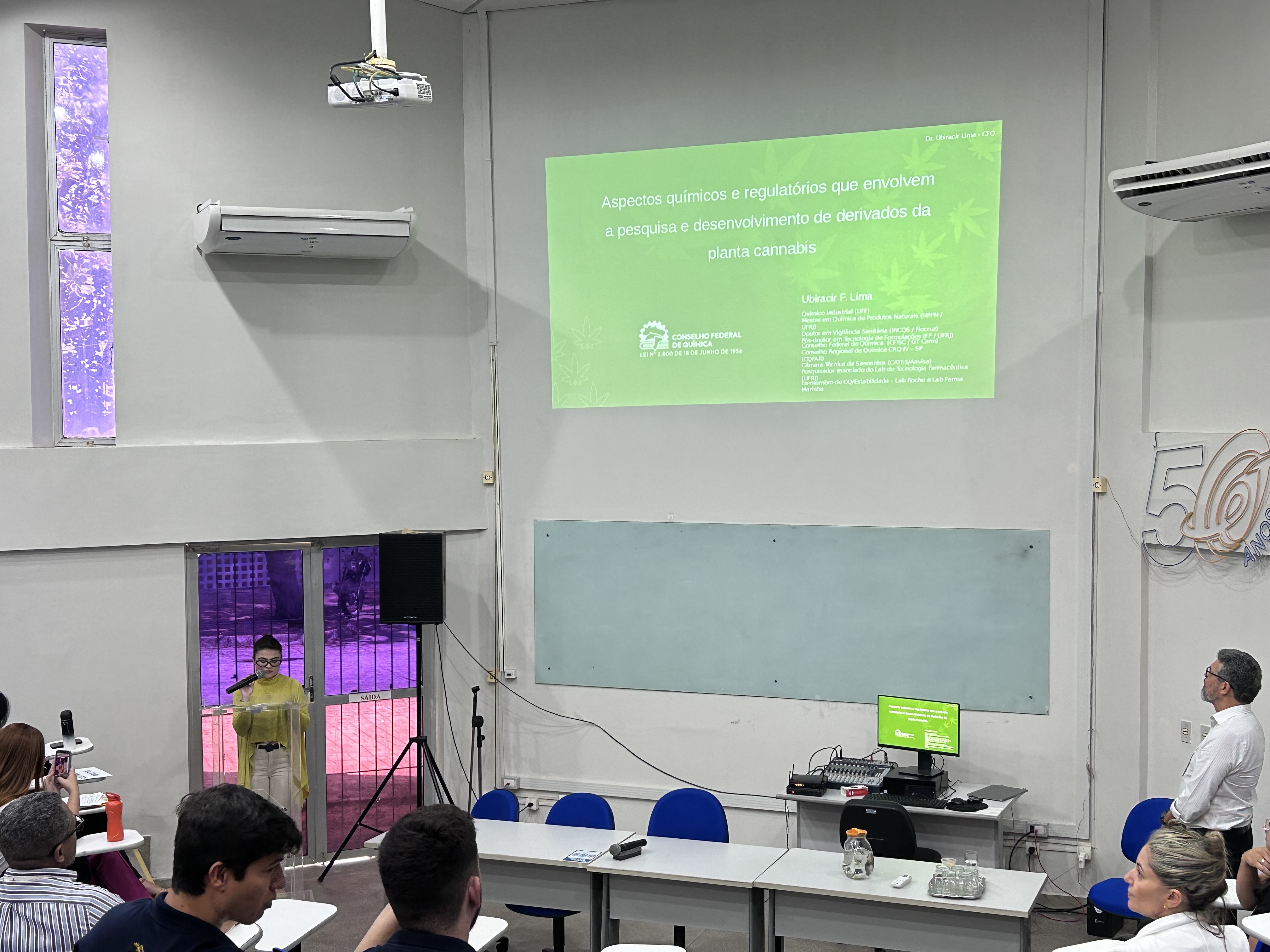 A palestra abordou a tecnologia e a regulação de insumos e produtos derivados da planta cannabis. Durante o simpósio, o conselheiro também atuou como avaliador de projetos de pesquisa desenvolvidos pelos alunos. “Trabalhos de alta tecnologia, desenvolvidos e apresentados com muita segurança pelos alunos de Química da UFRN”, destacou.