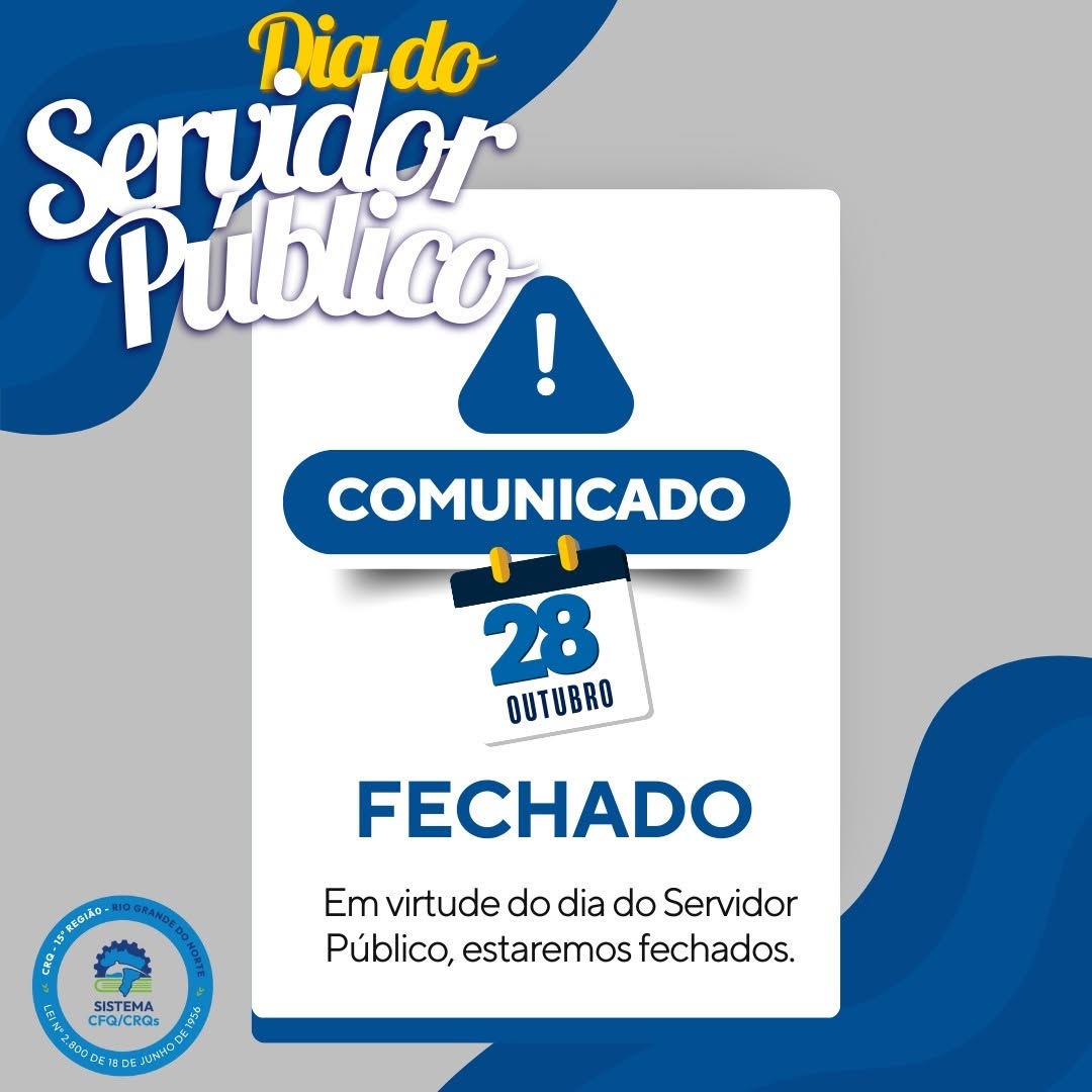 Informamos que estaremos fechados no dia 28 de outubro, emvirtude ao Dia do Servidor Público.