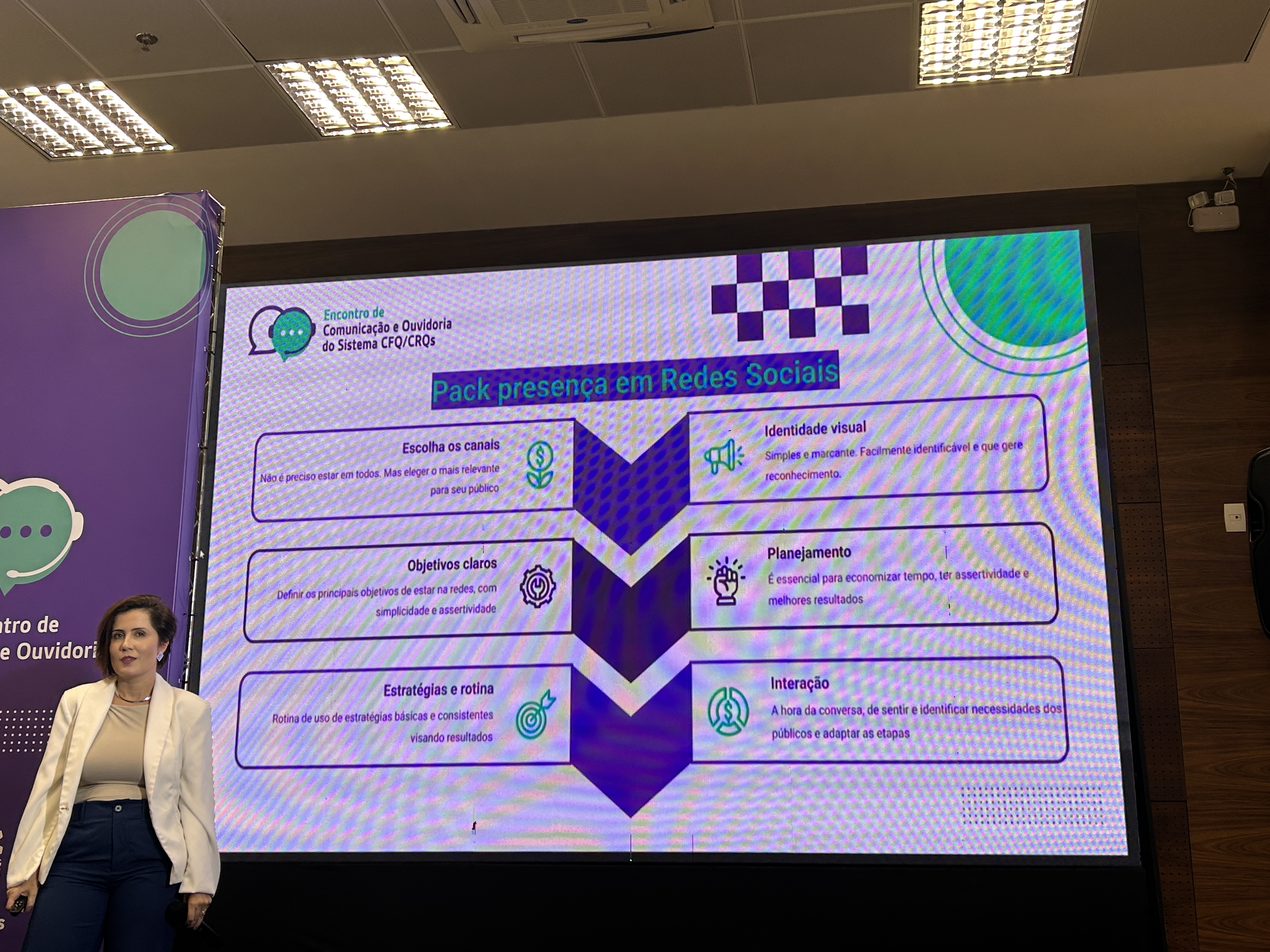 O Conselho Regional de Química da 15ª Região participou, no dia 24 de abril de 2025, do 1º Encontro de Comunicação eOuvidoria do Sistema CFQ/CRQs, um evento voltado ao fortalecimento daspráticas de transparência, diálogo institucional e integração entre as equipesque atuam na comunicação e no atendimento aos profissionais e empresas.