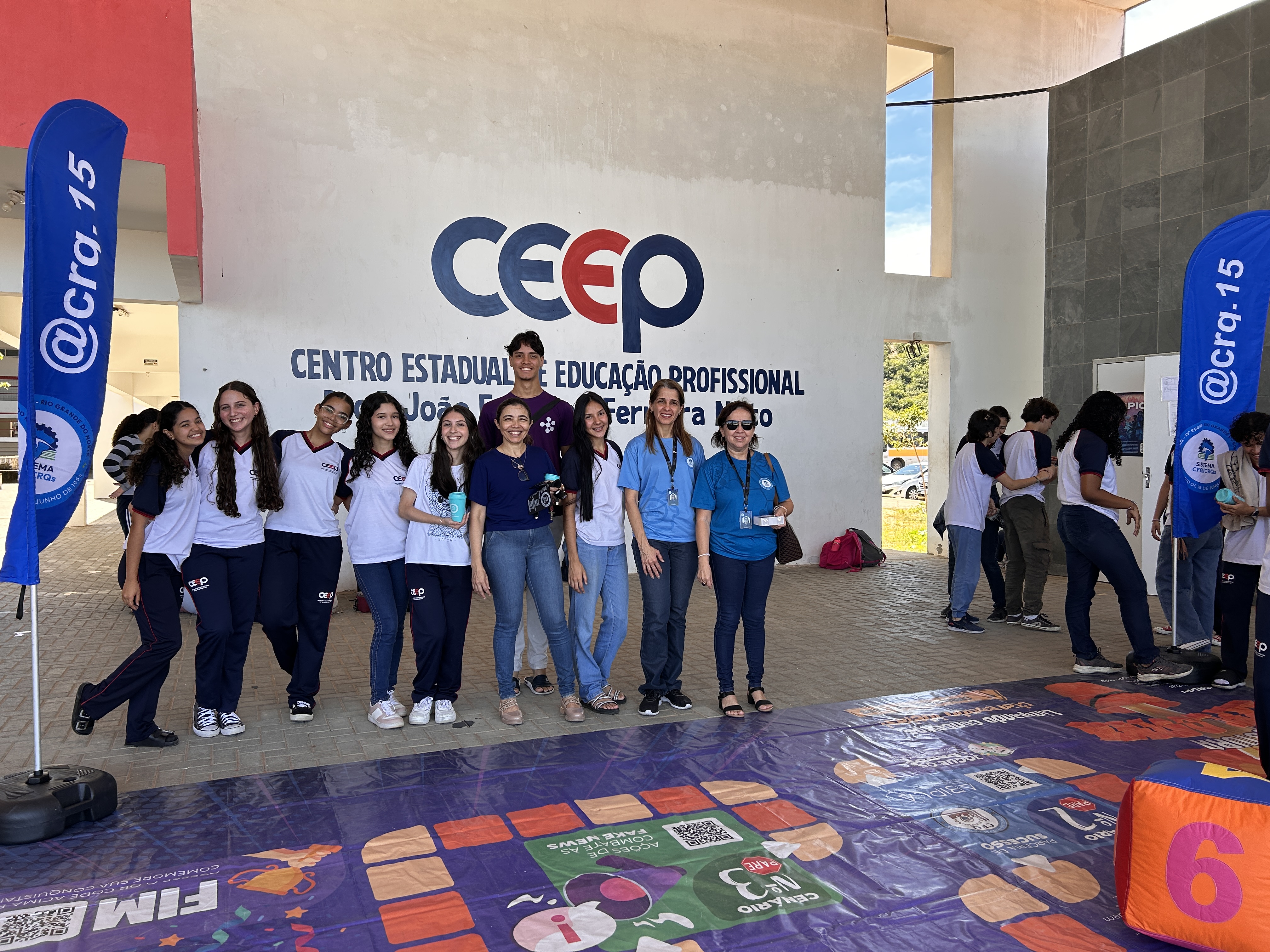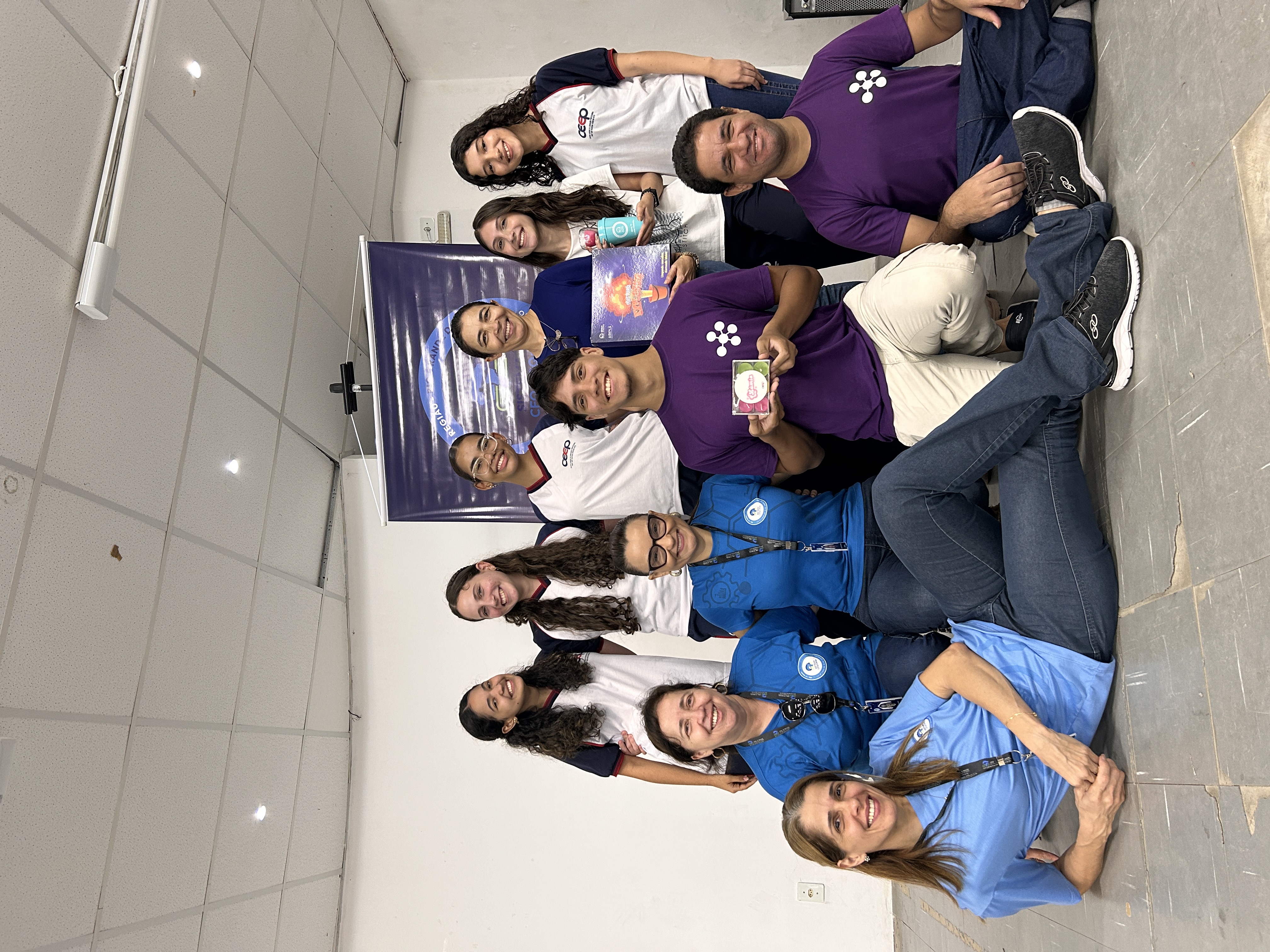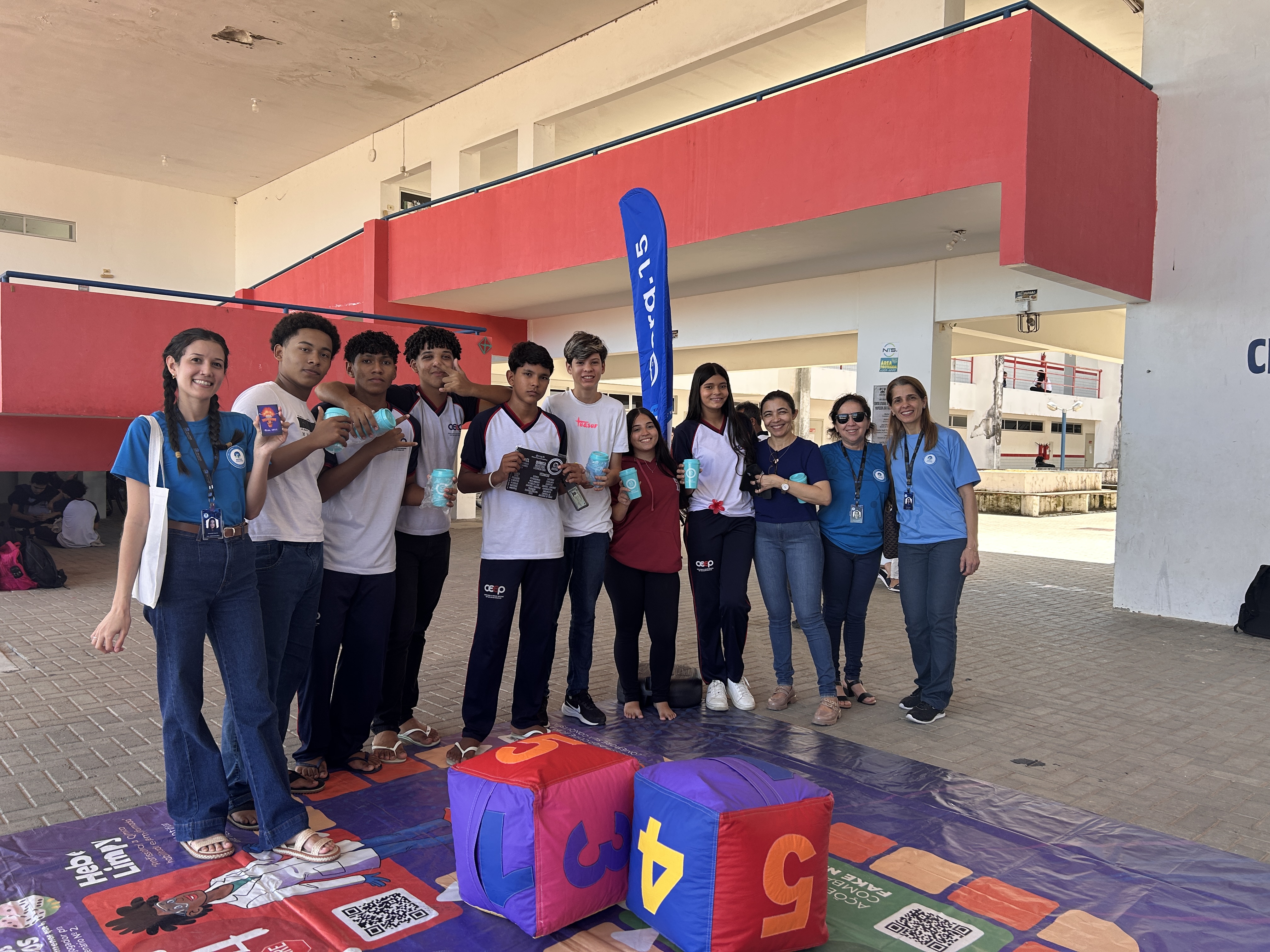 Ao final da palestra, os alunos participaram de uma dinâmica especial em um tapete interativo, que reforçou de forma lúdica os conceitos apresentados e proporcionou um momento de descontração e aprendizado.